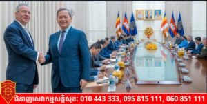 ភ្នំពេញ)៖ កម្ពុជា និងសហរដ្ឋអាមេរិក ប្រកាសបន្តពង្រឹង និងពង្រីកកិច្ចសហប្រតិបត្តិការទ្វេភាគីឱ្យកាន់តែស៊ីជម្រៅ។ ការប្រកាសបានធ្វើឡើង ក្នុងជំនួបសម្តេចមហាបវរធិបតី ហ៊ុន ម៉ាណែត នាយករដ្ឋមន្ត្រីកម្ពុជា និងលោក Michael George DeSombre ឧបការីរដ្ឋមន្ត្រីការបរទេសហរដ្ឋអាមេរិក ទទួលបន្ទុកតំបន់អាស៊ីបូព៌ា និងប៉ាស៊ីហ្វិក នាព្រឹកថ្ងៃទី៤ ខែវិច្ឆិកា ឆ្នាំ២០២៥ នៅវិមានសន្តិភាព។