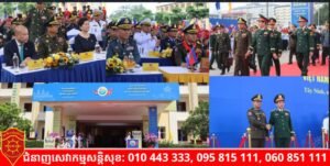 វៀតណាម)៖ នាយឧត្តមសេនីយ៍ ទៀ សីហា ឧបនាយករដ្ឋមន្ត្រី រដ្ឋមន្ត្រីក្រសួងការពារជាតិ និងនាយឧត្តមសេនីយ៍ ហ្វាន វ៉ាន់ យ៉ាង រដ្ឋមន្រ្តីក្រសួងការពារប្រទេសវៀតណាម បានអញ្ជើញចូលរួមប្រជុំថ្នាក់រដ្ឋមន្ត្រី ការពារជាតិប្រទេសលើកទី២ និងចូលរួមលំហាត់សុខាភិបាលរួមគ្នានៅច្រកព្រំដែនអន្តរជាតិម៉ុកបាយ ខេត្តតៃនិញ នៅថ្ងៃទី១៣ -១៤ ខែវិច្ឆិកា ឆ្នាំ២០២៥។