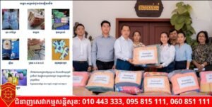 រដ្ឋមន្ត្រី នេត្រ ភក្ត្រា ទទួលសម្ភារៈចំនួន ៥០០កញ្ចប់ពីថ្នាក់ដឹកនាំ និងមន្ត្រីរាជការអគ្គលេខាធិការដ្ឋាននៃក្រសួងព័ត៌មាន សម្រាប់ចែកជូនជនភៀសសឹក