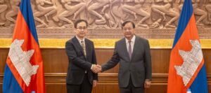 ភ្នំពេញ)៖ លោកឧបនាយករដ្ឋមន្រ្តី ប្រាក់ សុខុន រដ្ឋមន្រ្តីការបរទេស និងសហប្រតិបត្តិការអន្តរជាតិកម្ពុជា នៅព្រឹកថ្ងៃទី២៥ ខែធ្នូ ឆ្នាំ២០២៥ បានអនុញ្ញាតឱ្យ លោក NAMAZU Hiroyuki អនុរដ្ឋមន្រ្តីការបរទេសជប៉ុន ចូលជួបសម្តែងការគួរសម នៅទីស្តីការក្រសួងការបរទេស។