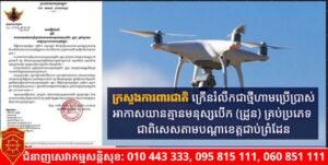 ក្រសួងការពារជាតិ ក្រើនរំលឹកជាថ្មីហាមប្រើប្រាស់អាកាសយានគ្មានមនុស្សបើក (ដ្រូន) គ្រប់ប្រភេទ ជាពិសេសតាមបណ្តាខេត្តជាប់ព្រំដែន