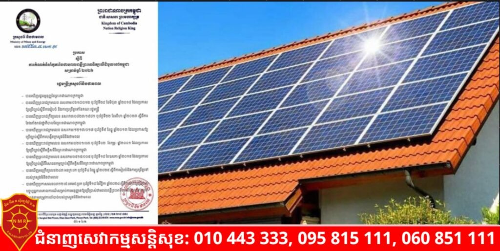 ក្រសួងរ៉ែ និងថាមពល អនុញ្ញាតផ្ដល់កូតា៣០មេហ្កាវ៉ាត់ ជូនអាជ្ញាធរអគ្គិសនីកម្ពុជាសម្រាប់ផ្ដល់ឱ្យអ្នកប្រើប្រាស់អគ្គិសនីដែលស្នើសុំដំឡើង និងប្រើប្រាស់ប្រព័ន្ធថាមពលពន្លឺព្រះអាទិត្យលើដំបូលក្នុងឆ្នាំ២០២៦