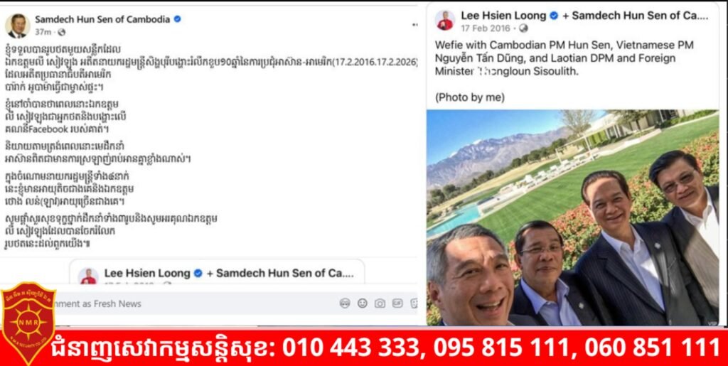 សម្តេចតេជោ ហ៊ុន សែន បានបង្ហោះរូបថត អមដោយខ្លឹមសារទាំងស្រុងដូច្នេះថា៖ «ខ្ញុំទទួលបានរូបថតមួយសន្លឹក ដែលឯកឧត្តម លី សៀវឡុង អតីតនាយករដ្ឋមន្ត្រីសង្ហបុរី បង្ហោះរំលឹកខួប ១០ឆ្នាំនៃការប្រជុំអាស៊ាន-អាមេរិក (17.2.2016.17.2.2026) ដែលអតីតប្រធានាធិបតីអាមេរិក បារ៉ាក់ អូបាម៉ា ធ្វើជាម្ចាស់ផ្ទះ។ ខ្ញុំនៅចាំបានថាពេលនោះឯកឧត្តម លី សៀវឡុង ជាអ្នកថតនិងបង្ហោះលើគណនី Facebook របស់គាត់។