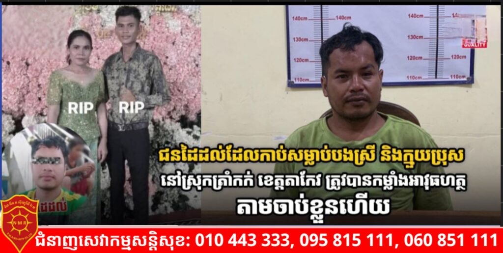 ជនដៃដល់ដែលកាប់សម្លាប់បងស្រី និងក្មួយប្រុស នៅស្រុកត្រាំកក់ ខេត្តតាកែវ ត្រូវបានកម្លាំងអាវុធហត្ថតាមចាប់ខ្លួនហើយ
