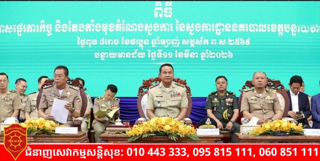(បន្ទាយមានជ័យ)៖ នាយឧត្តមសេនីយ៍ ស ថេត អគ្គស្នងការនគរបាលជាតិ បានណែនាំស្នងការថ្មី នៃស្នងការដ្ឋាននគរបាលខេត្តបន្ទាយមានជ័យ លោកឧត្តមសេនីយ៍ត្រី សឿម សារិទ្ធ ត្រូវរក្សាសាមគ្គីផ្ទៃក្នុងអង្គភាព ពង្រឹងរបៀបរបរនៃការធ្វើការងារ និងបង្ការ ទប់ស្កាត់បទល្មើសគ្រប់ប្រទេស ពិសេស Online Scam និងការគ្រប់គ្រងជនបរទេស អនុវត្តតាមបទបញ្ជារបស់រាជរដ្ឋាភិបាល ដើម្បីធានាសន្ដិសុខ សណ្ដាប់ធ្នាប់ និងសុវត្ថិភាពជូនប្រជាពលរដ្ឋក្នុងខេត្តបន្ទាយមានជ័យឲ្យបានល្អប្រសើរ។