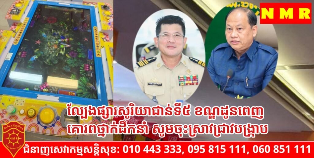 រាជធានីភ្នំពេញ÷ សូមធ្វេីសេចក្តីរាយការណ៍ជូន អាជ្ញាធរពាក់ព័ន្ធ ក្នុងខណ្ឌដូនពេញ ជាពិសេស លោក ជា ខេមា អភិបាលខណ្ឌដូនពេញ ! សូមចាត់មន្ត្រីជំនាញ ពាក់ព័ន្ធ ចុះត្រួតពិនិត្យ ទីតាំងល្បែងកម្សាន្ត មួយកន្លែង ឋិតនៅលើផ្សារទំនើបសូរិយា (ជាន់ទី៥) កំពុងពង្វក់អារម្មណ៍ សិស្សសាលាគេចម៉ោងរៀន !និងបណ្តាយុវជននិង យុវចាស់ប្រុស-ស្រី មួយចំនួន លេងល្បែងស៊ីសង ដោយក្តីអនុគ្រោះផងទាន !! រក្សាបទបព្ជាភូមិ/ សង្កាត់មានសុវត្ថិភាព ដែលថ្នាក់ដឹកនាំ ដាក់អោយមន្ត្រីថ្នាក់ក្រោមអនុវត្តតាម!!!។