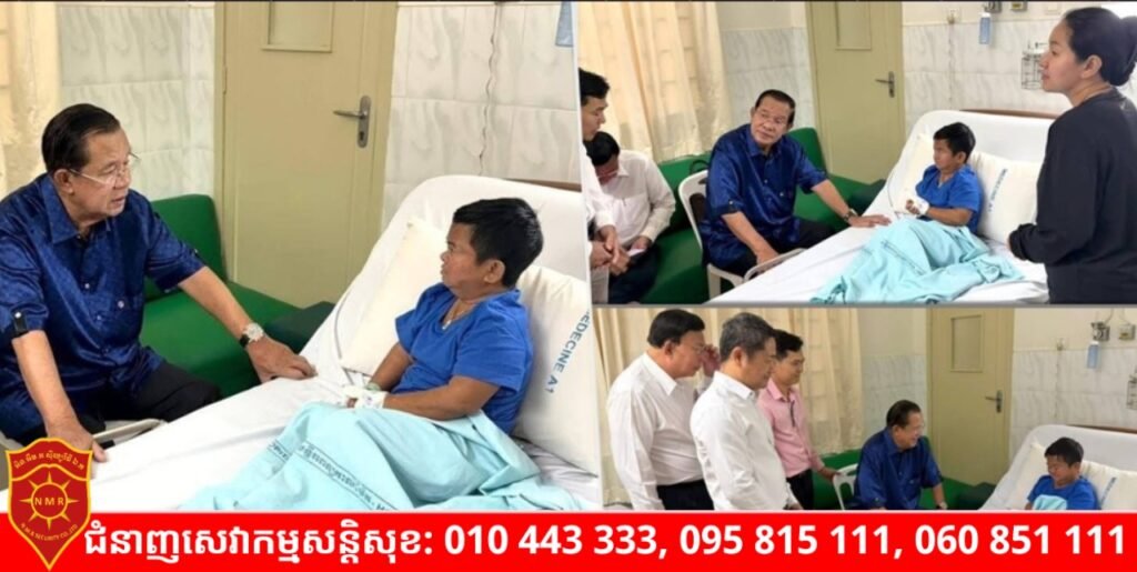(ភ្នំពេញ)៖ នៅព្រឹកថ្ងៃអាទិត្យ ទី២២ ខែមីនា ឆ្នាំ២០២៦នេះ សម្តេចតេជោ ហ៊ុន សែន ប្រមុខរដ្ឋស្តីទី បានអញ្ជើញសួរសុខទុក្ខនាយក្រិនដែលកំពុងសម្រាកព្យាបាលរលាកស្រោមខួរនៅមន្ទីរពេទ្យកាលម៉ែត។