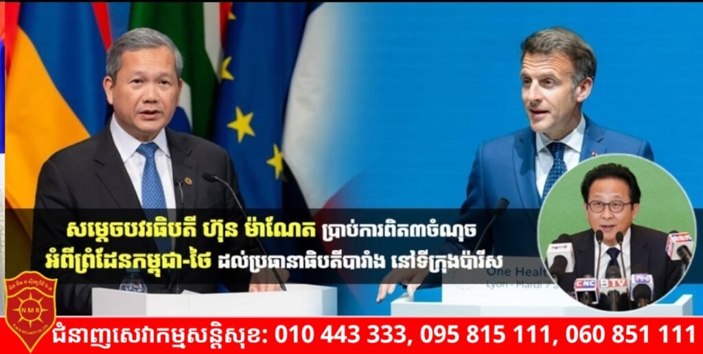 សម្តេចបវរធិបតី ហ៊ុន ម៉ាណែត ប្រាប់ការពិត៣ចំណុច អំពីព្រំដែនកម្ពុជា-ថៃ ដល់ប្រធានាធិបតីបារាំង នៅទីក្រុងប៉ារីស