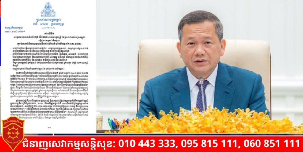 (ភ្នំពេញ)៖ សម្តេចមហាបវរធិបតី ហ៊ុន ម៉ាណែត នាយករដ្ឋមន្ត្រី នៃព្រះរាជាណាចក្រកម្ពុជា បានផ្ញើសារលិខិតជូនជនរួមជាតិកម្ពុជា ក្នុងឱកាសពិធីបុណ្យចូលឆ្នាំថ្មីប្រពៃណីជាតិ ឆ្នាំមមី អដ្ឋស័ក ព.ស.២៥៧០។