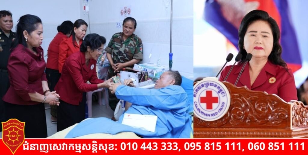 (ភ្នំពេញ)៖ ក្នុងមនោសញ្ចេតនាគោរពស្រឡាញ់ និងជួយសម្រាលការលំបាកចំពោះយោធិន ដែលមានជំងឺ នៅរសៀលថ្ងៃច័ន្ទ ទី២០ ខែមេសាឆ្នាំ២០២៦ សម្តេចកិត្តិព្រឹទ្ធបណ្ឌិត ប៊ុនរ៉ានី ហ៊ុនសែន ប្រធានកាកបាទក្រហមកម្ពុជា បានចាត់លោកស្រី ពុំ ចន្ទីនី អគ្គលេខាធិការកាកបាទក្រហមកម្ពុជា និងសហការី អញ្ជើញសួរសុខទុក្ខ និងនាំយកអំណោយមនុស្សធម៌ ផ្តល់ជូនយោធិនមានជំងឺ ដែលកំពុងសម្រាកព្យាបាលនៅមន្ទីរពេទ្យព្រះកេតុមាលា ក្នុងរាជធានីភ្នំពេញ។