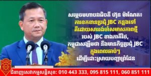 សម្តេចមហាបវរធិបតី ហ៊ុន ម៉ាណែត៖ ការខកខានប្រជុំ JBC កន្លងទៅ គឺដោយសាររង់ចាំសមាសភាពថ្មីរបស់ JBC ខាងភាគីថៃ, កម្ពុជាសង្ឃឹមថា នឹងមានកិច្ចប្រជុំ JBC ក្នុងពេលឆាប់ៗ ដើម្បីដោះស្រាយបញ្ហាព្រំដែន