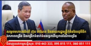 សម្ដេចមហាបវរធិបតី ហ៊ុន ម៉ាណែត និងនាយករដ្ឋមន្ដ្រីកុំមិនវែលដូមីនីក ឯកភាពពង្រឹង និងពង្រីកទំនាក់ទំនងទ្វេភាគីឲ្យកាន់តែរីកចម្រើន