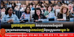 ភ្នំពេញ)៖ ថ្លែងក្នុងកិច្ចប្រជុំថ្នាក់ដឹកនាំពិភពលោកនៅទីក្រុងប៉េកំាងប្រទេសចិន, សម្តេចមហារដ្ឋសភាធិការធិបតី ឃួន សុដារី ប្រធានរដ្ឋសភានៃព្រះរាជាណាចកម្ពុជា នៅថ្ងៃទី១៤ ខែតុលា ឆ្នាំ២០២៥ បានអំពាវនាវ ដល់សហគមន៍អន្តរជាតិ មេត្តាចូលរួមតាមដានឱ្យបានជិតដិត លើការអនុវត្តបទឈប់បាញ់រវាងកម្ពុជា-ថៃ ដែលមានលក្ខណៈផុយស្រួយដើម្បីស្តារនូវសន្តិភាព និងប្រក្រតីភាពឡើងវិញ។ ពិធីនេះ ជាវេទិកាប្រមូលផ្តុំថ្នាក់ដឹកនាំនីតិប្បញ្ញត្តិ នីតិប្រតិបត្តិនិងដៃគូនានាមកពីប្រទេសជាង១០០ ក្នុងទ្វីបទាំង៥ នៃពិភពលោក។