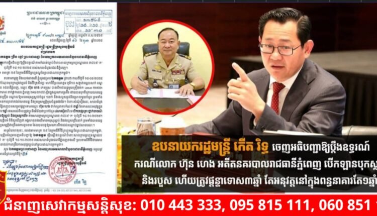 ឧបនាយករដ្ឋមន្រ្តី កើត រិទ្ធ ចេញអធិបញ្ជាឱ្យប្តឹងឧទ្ធរណ៍ករណីលោក ហ៊ុន ហេង អតីតនគរបាលរាជធានីភ្នំពេញ បើកឡានបុកស្លាប់ និងរបួស ហើយត្រូវផ្តន្ទាទោស៣ឆ្នាំ តែអនុវត្តនៅក្នុងពន្ធនាគារតែ១ឆ្នាំ